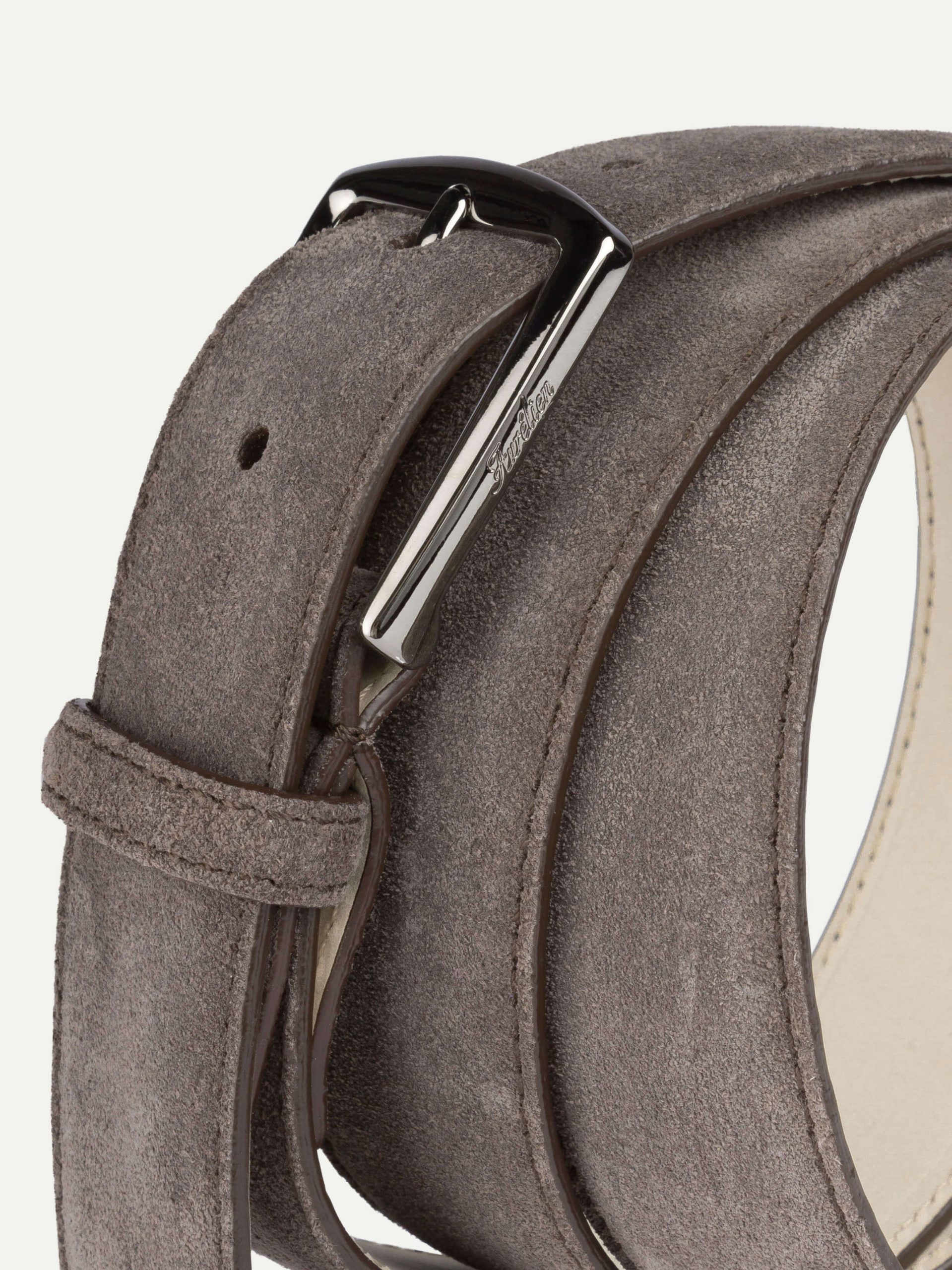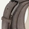 Highly supple belt made of Softey® suede and nubuck that teams clean lines with a polished gun metal buckle, making it a timeless and versatile addition to any man’s repertoire. Faultlessly crafted in Italy, it’s an equally sharp choice for light or dark trousers. Removable buckle to adjust the belt to perfect fit, one size fits all. Matches with the beige suede driving shoes, sneakers and loafers.