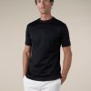 Short-sleeved T-shirt in super-soft interlock cotton. Designed with a classic crew neck collar, this T-shirt is knitted from fine Egyptian cotton, so it drapes effortlessly and comfortably. The extra-long staple and double mercerized cotton is characterized by outstanding softness and a silky feel that maintains with wear. Ideal for layering throughout the year.