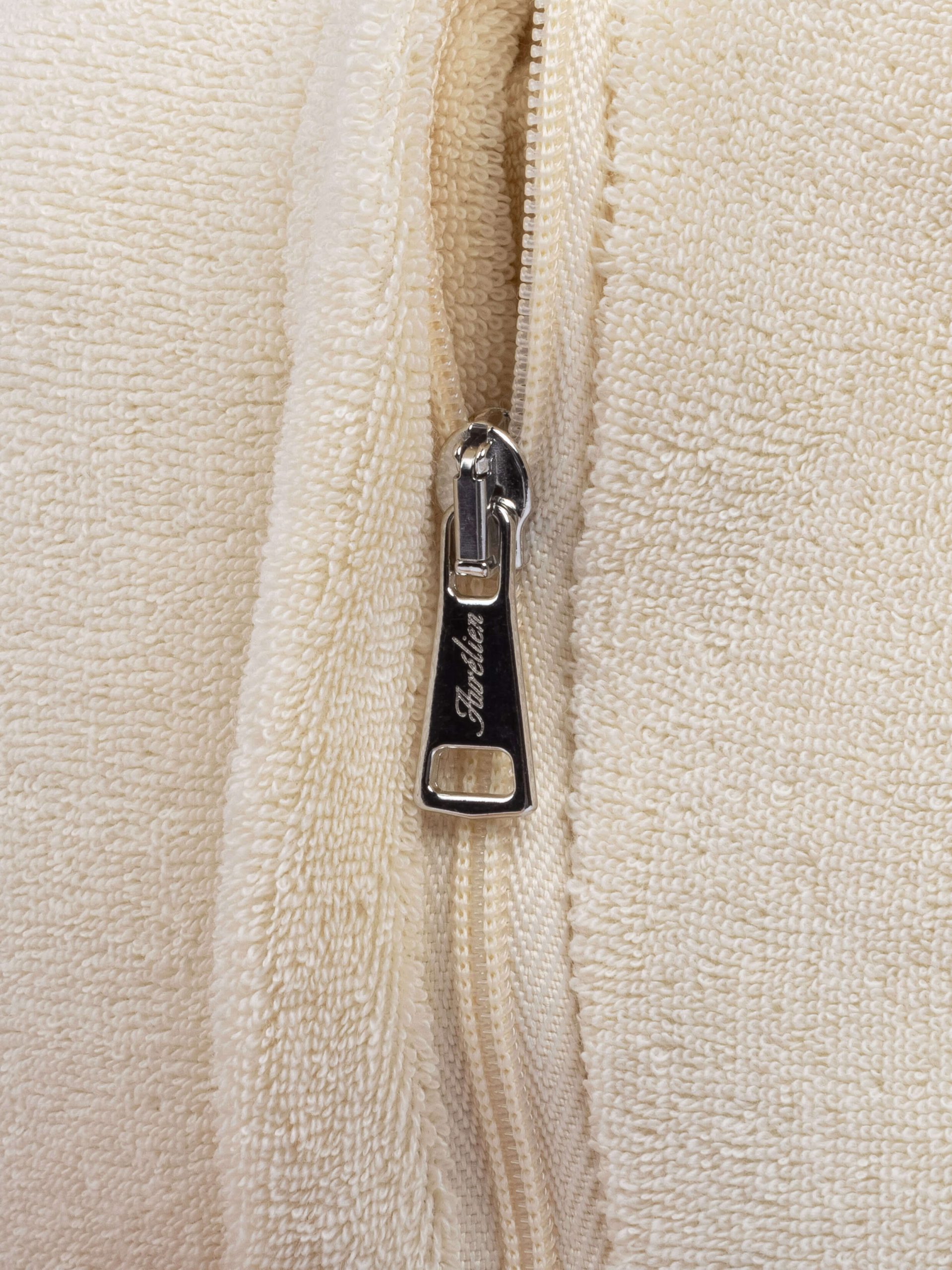 Our Beachside Pillow is the ideal choice for stylish lounging. Crafted with luxuriously soft terry cotton, it’s the perfect accessory for poolside or beachside relaxation. The pillow features a hidden pocket behind the zipper to safeguard your belongings while at the beach.