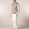 This Beige Body Warmer adds a luxurious touch to your leisurely days spent by the shore. The soft matte outer shell is crafted from recycled fish nets and boasts a wind and waterproof finish. The interior is lined with a cashmere blend for lightweight yet sumptuous comfort. The lightly-padded design provides a warm embrace while exuding chic Mediterranean style.