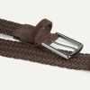 Woven belts are a great choice with chinos, and this belt presents a suitably luxurious option for the discerning dresser. This piece is crafted from tough waxed cotton and trimmed with soft suede, while the gunmetal-tone buckle finishes it off nicely. Match the brown tone with sand or beige trousers or dark jeans.