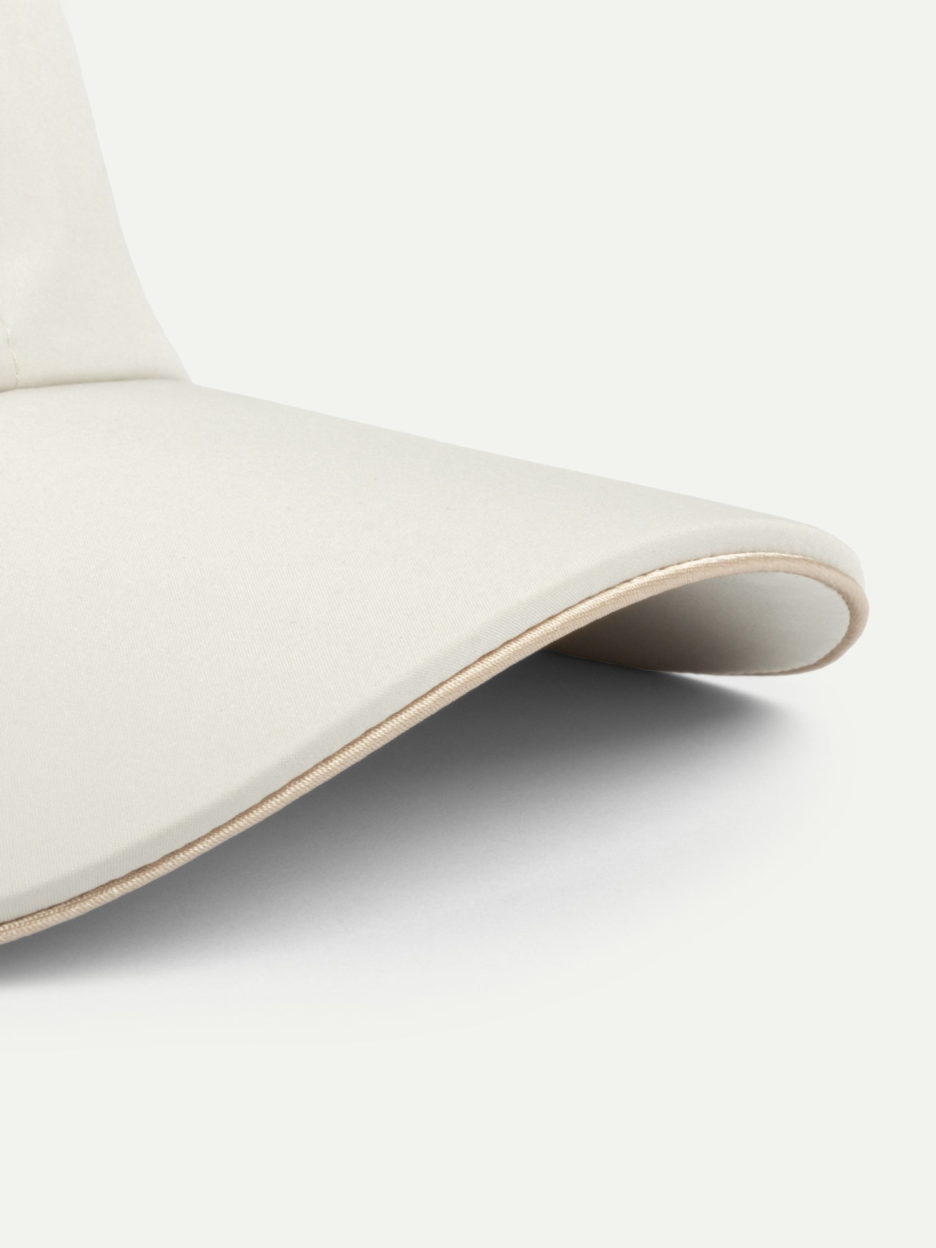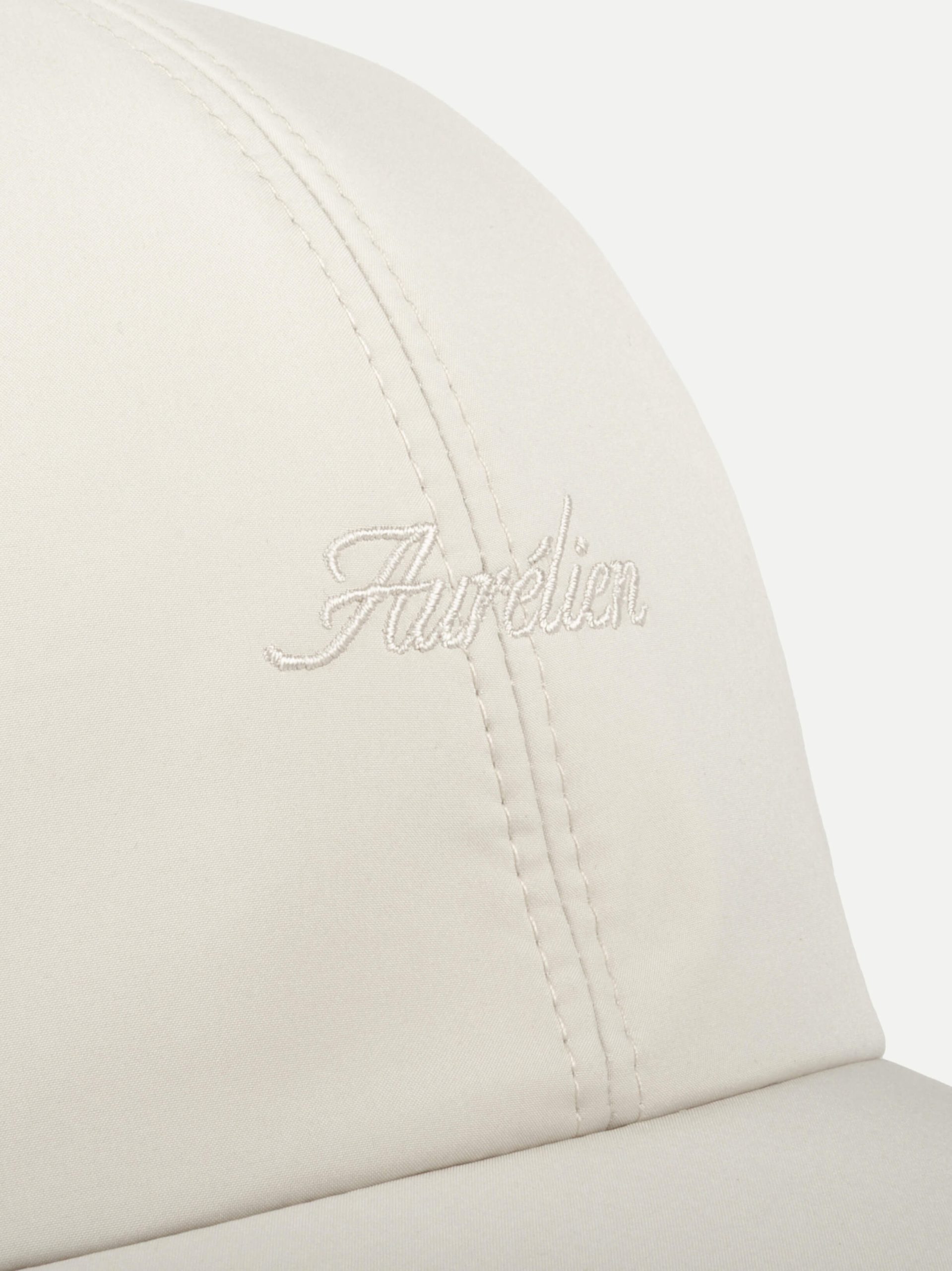 This baseball cap has been made in Italy from luxurious technical fabric. The soft matte outer shell is crafted from recycled fish nets and boasts a wind- and waterproof finish, while the interior is lined with 100% cotton for ultimate comfort. A refined detail, the signature Aurélien gold satin piping around the brim. Ideal for refined leisure looks.
