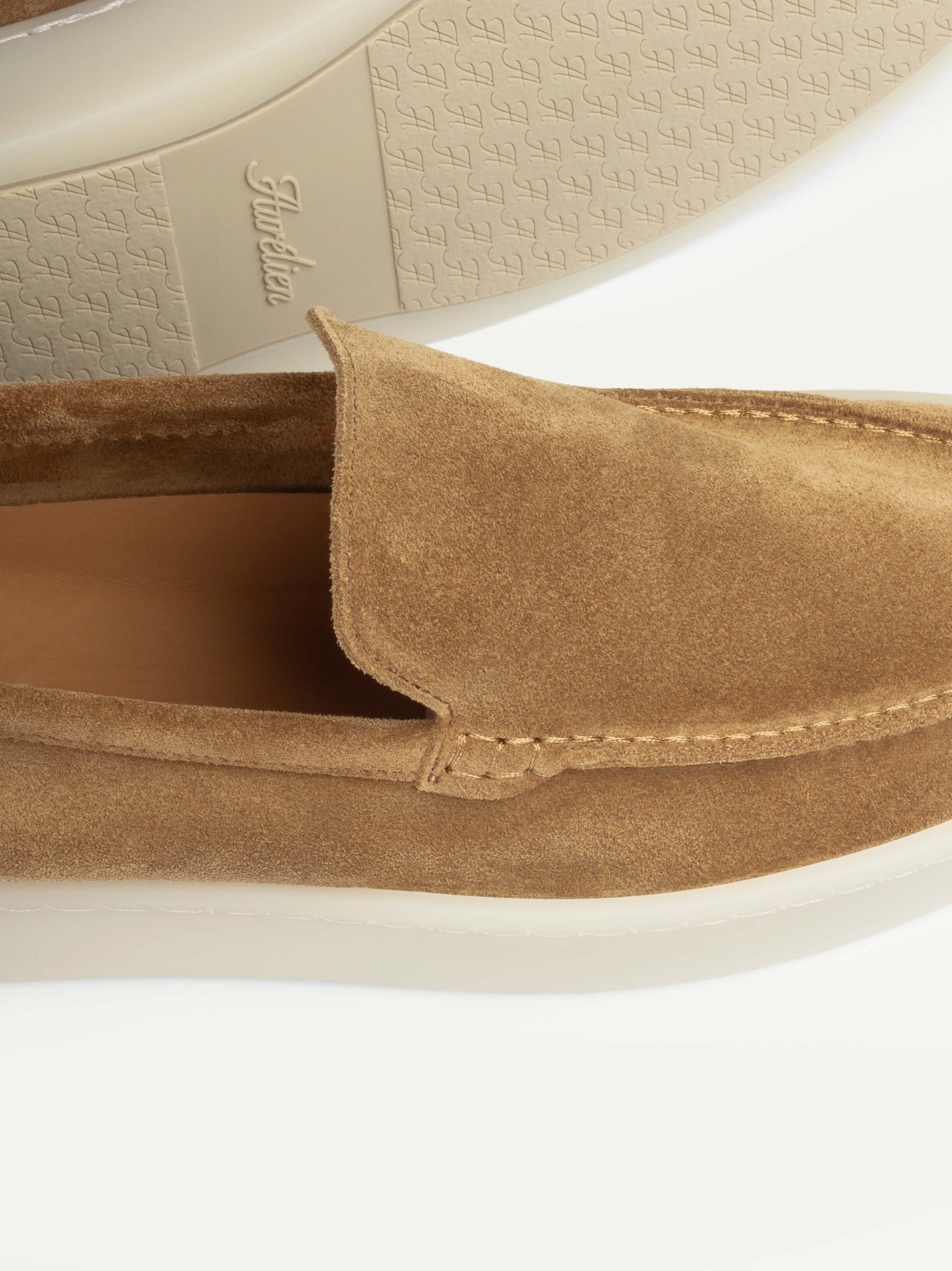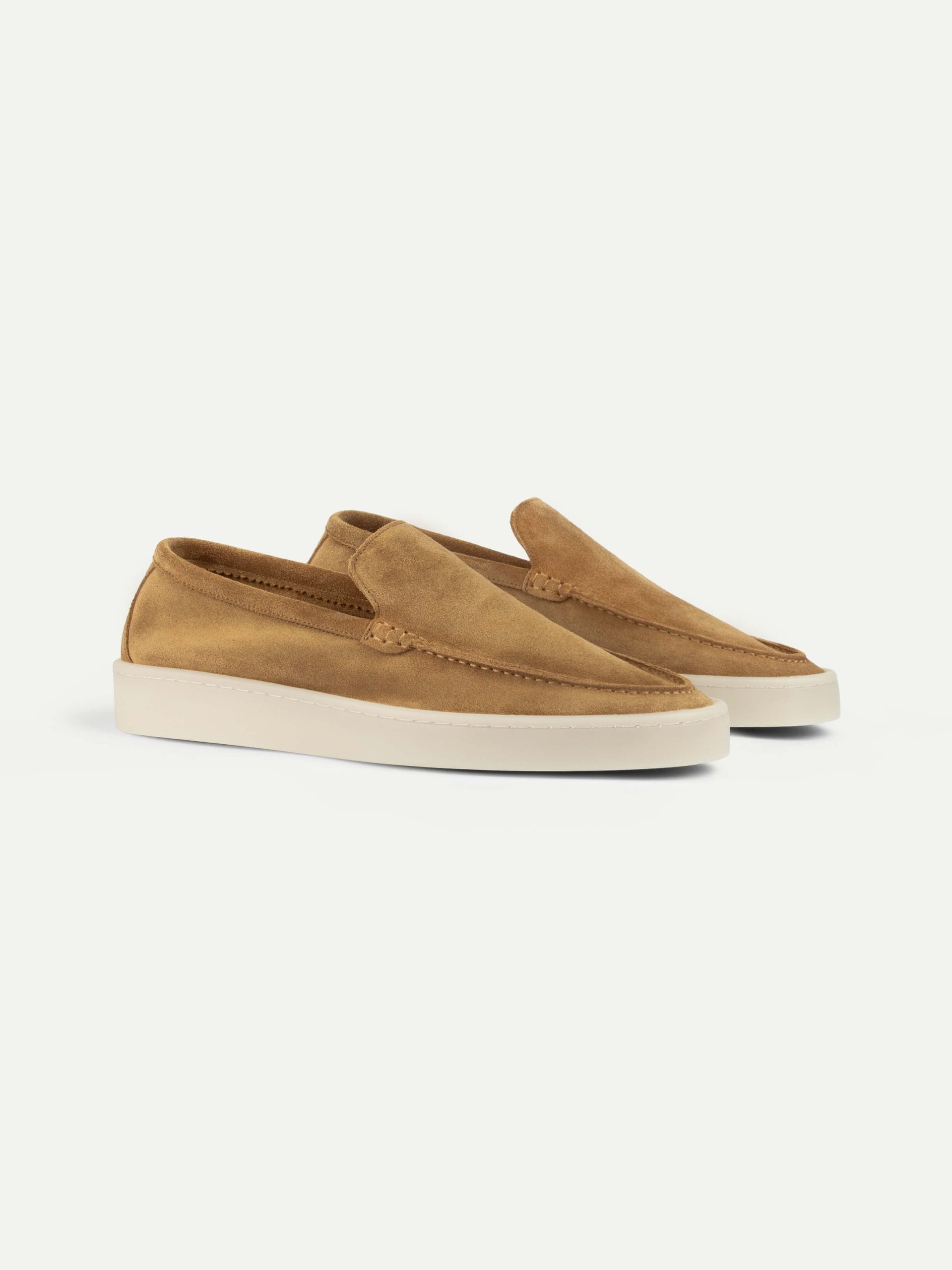 The Aurélien Urban Loafer is a refined hybrid between a sneaker and a loafer, blending effortless style with superior craftsmanship. Designed with a minimalistic silhouette, it features smooth, unlined suede uppers and durable rubber soles for all-day comfort. The slightly translucent ivory-colored sole adds an elegant touch, while the subtle monogram detail on the bottom enhances its distinctive appeal. A contemporary take on luxury, the Urban Loafer offers the perfect balance of sophistication and ease.