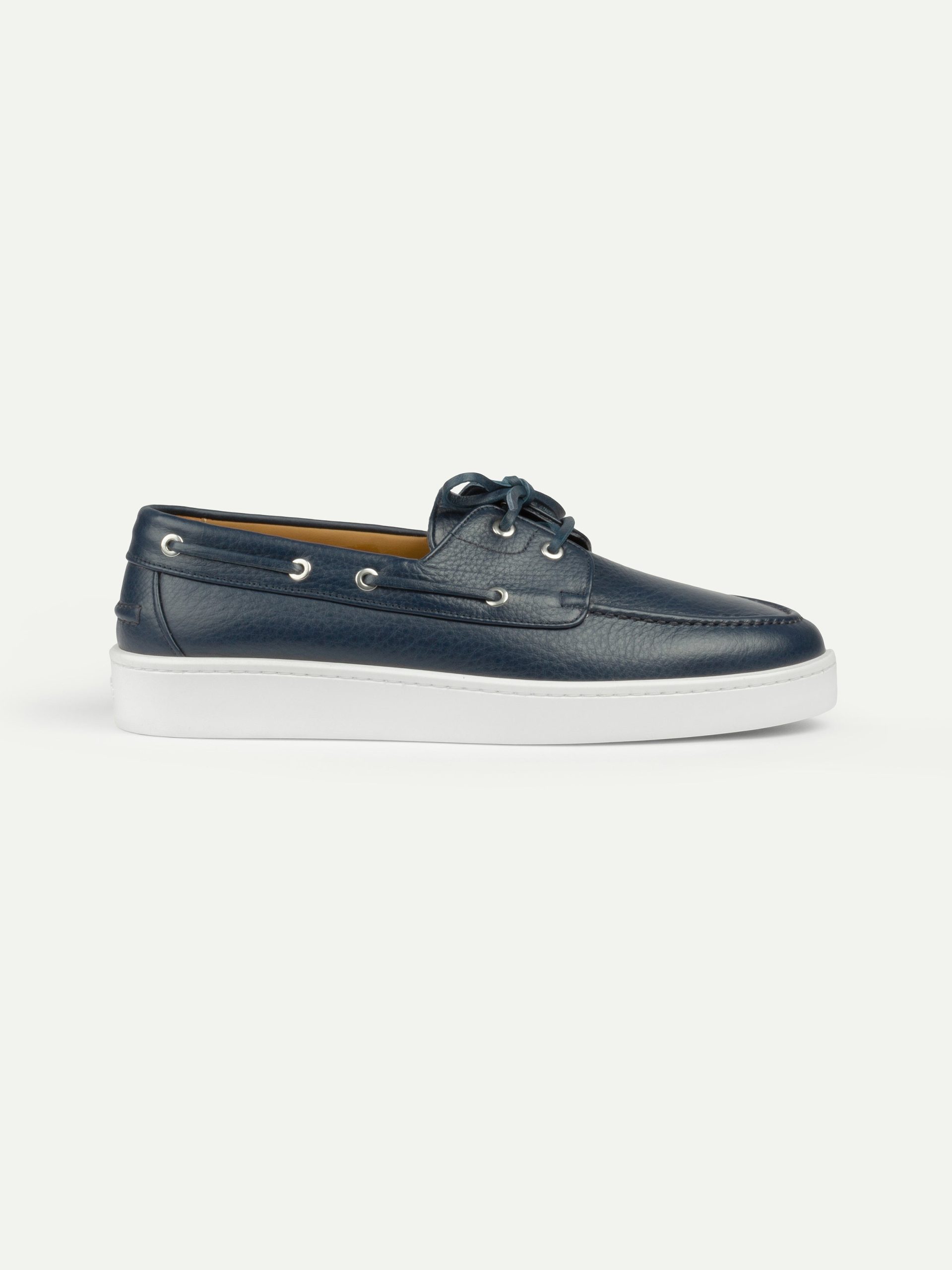 The Aurélien Boat Sneaker is a refined expression of coastal elegance. Crafted from supple grain leather with a deerskin-like touch, it evokes the quiet luxury of life by the sea, where the light is soft and time flows with ease. Lined in smooth leather and finished with durable rubber soles, it is designed for effortless movement and lasting comfort. Minimal in form, versatile in spirit, and made for sunlit escapes. This is joie-de-vivre, shaped into every step.