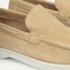 The luxurious Softey® Suede has a fine round touch and a subtle shine giving the shoes a luxurious appearance. This smart pair has suede uppers and is set on sailing-inspired rubber soles. The almond-shaped toes make this pair smarter than your average slip-on.