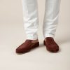 Our iconic Voyager Loafer is reimagined in a backless design, expertly crafted from supple suede and luxuriously lined with smooth leather. Its unique construction and stitching technique create a suede-trimmed sole that blends seamlessly with the silhouette. An ideal companion for seaside strolls or days spent at the beach.