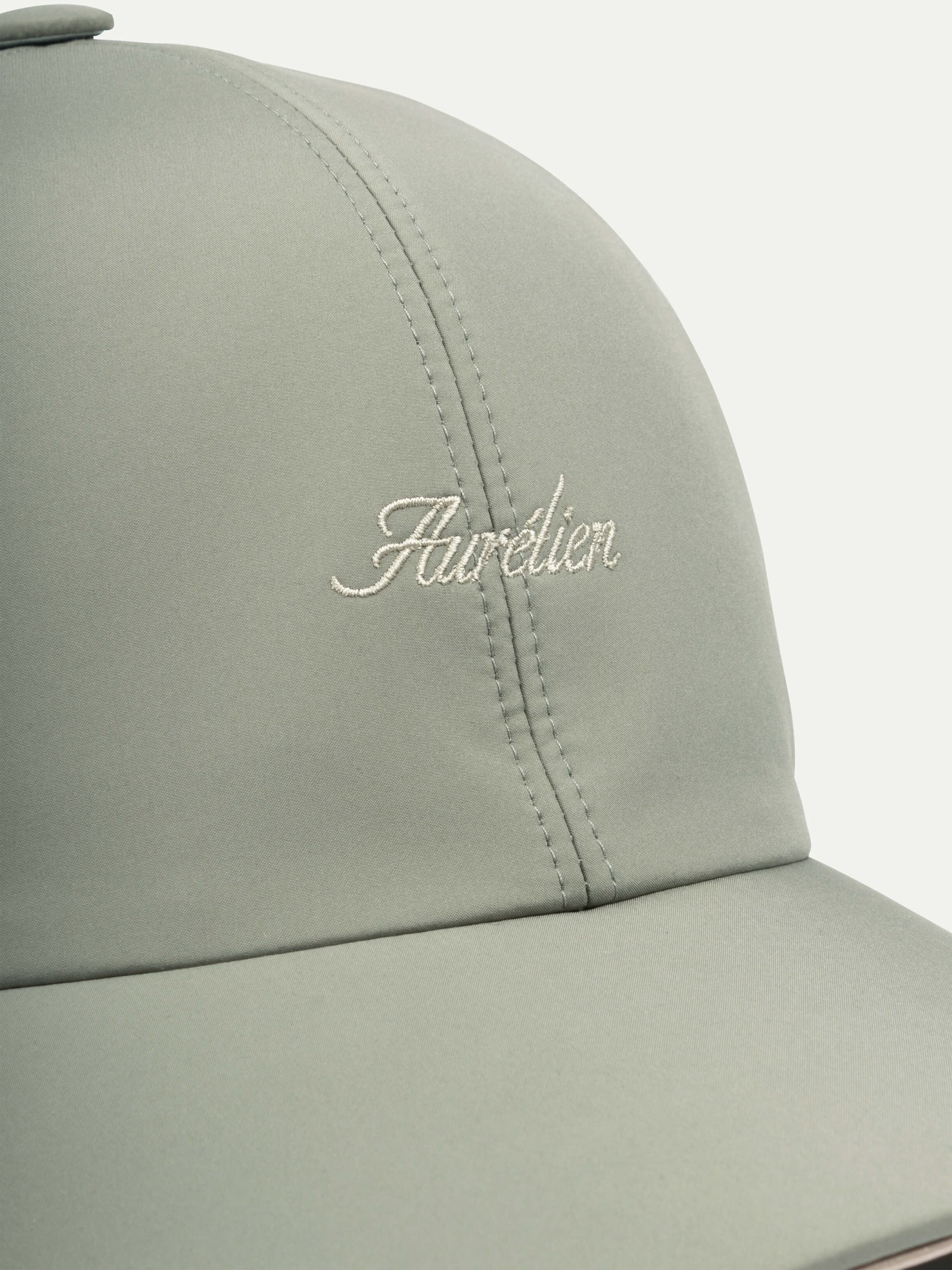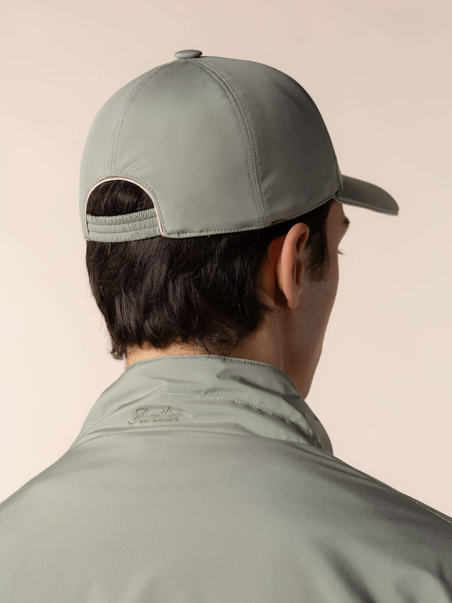 This baseball cap has been made in Italy from luxurious technical fabric. The soft matte outer shell is crafted from recycled fish nets and boasts a wind- and waterproof finish, while the interior is lined with 100% cotton for ultimate comfort. A refined detail, the signature Aurélien gold satin piping around the brim. Ideal for refined leisure looks.
