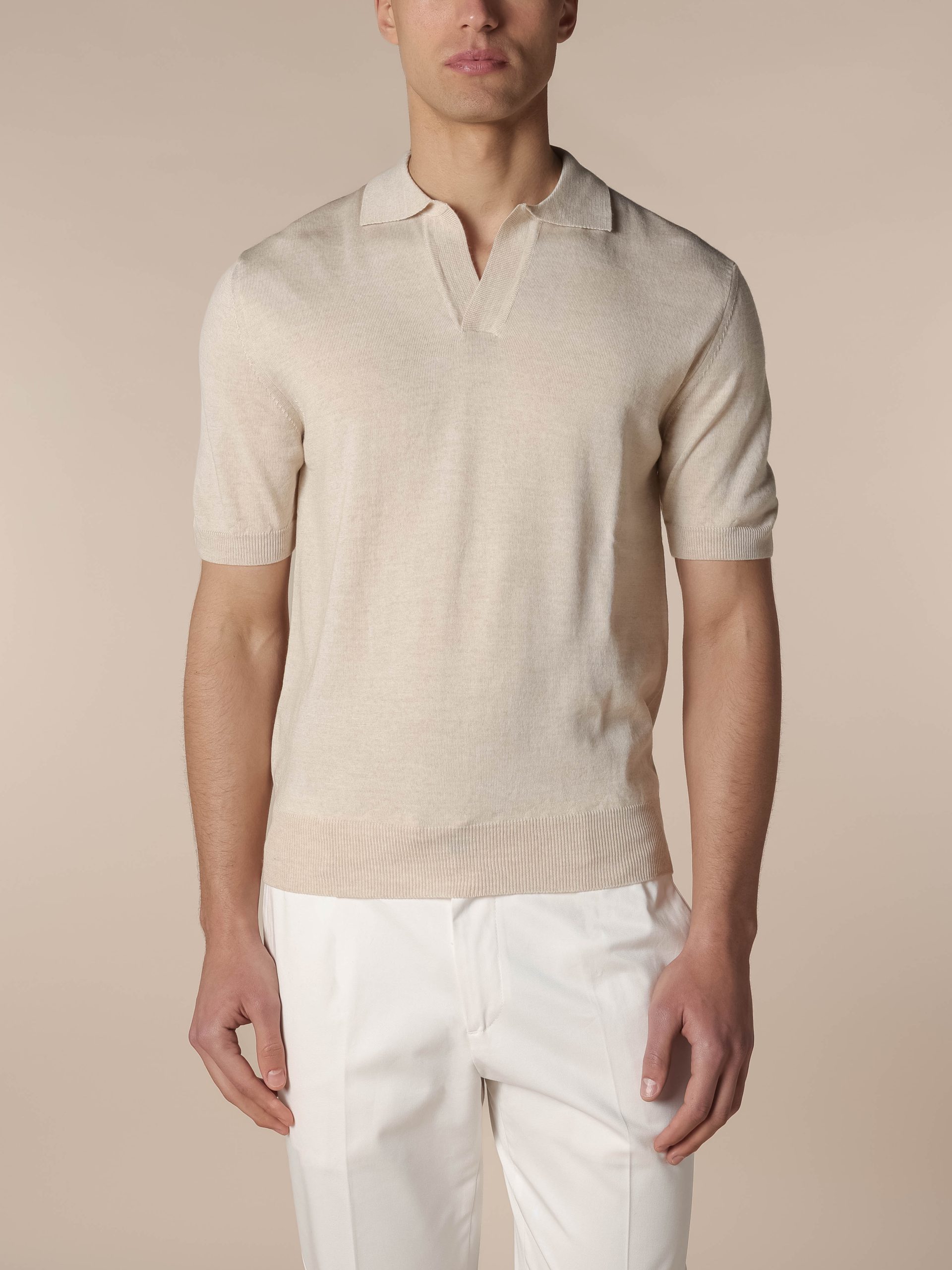Aurélien Men’s Shortsleeve Buttonless Polo Light Beige | Shortsleeve