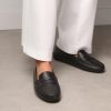 The symbol of Mediterranean getaways and ultimate comfort. But never out of place at a more formal occasion. This style features a super soft leather with exposed hand stitching, penny emblem, iconic rubber pebble sole and combines diverse materials in a classically casual contrast. Wear yours with ankle-grazing pants or jeans. True to size. Go up to the nearest size. Example: if you usually wear 36.5 go up to 37. You can always make an easy exchange if you prefer another size